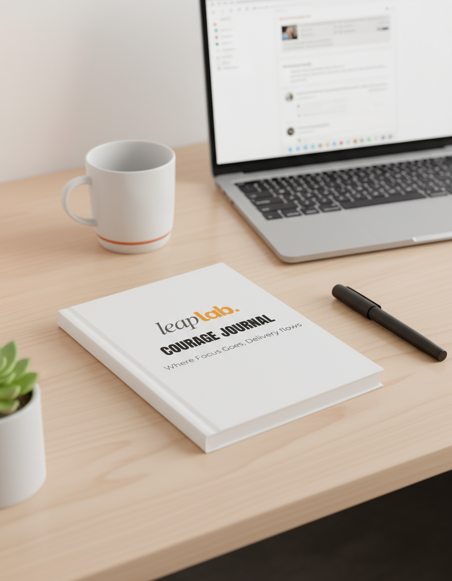 The Courage Journal by The Leap Lab is more than just pages — it’s your daily space for courage, clarity, and reflection.